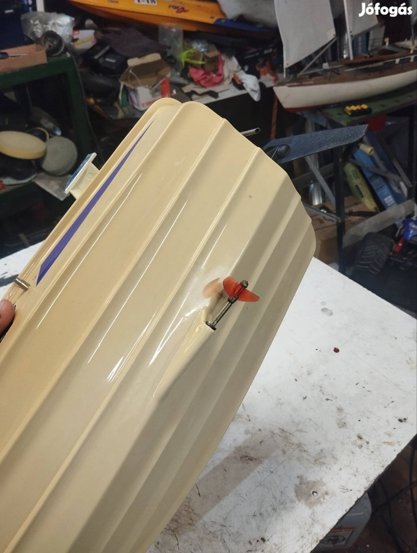 Eladó a kepeken látható távirányítós modellhajó, gyári távirányítóval, de kapott egy új esc-t mert a gyárival nagyon lassú volt ,es hátramenet se volt benne.