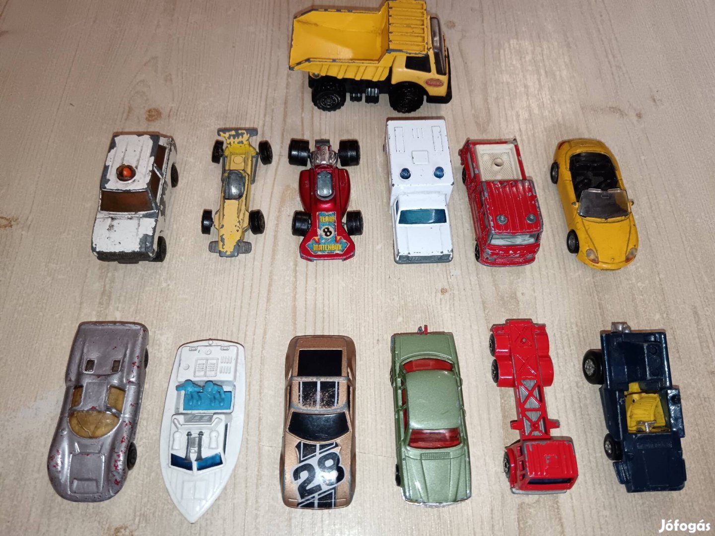 Eladó a képen látható 13 darabos kisautó pakk a fotók szerinti külső állapotban. 9 matchbox, 1 siku, 2 majorette és 1 japán tonka.