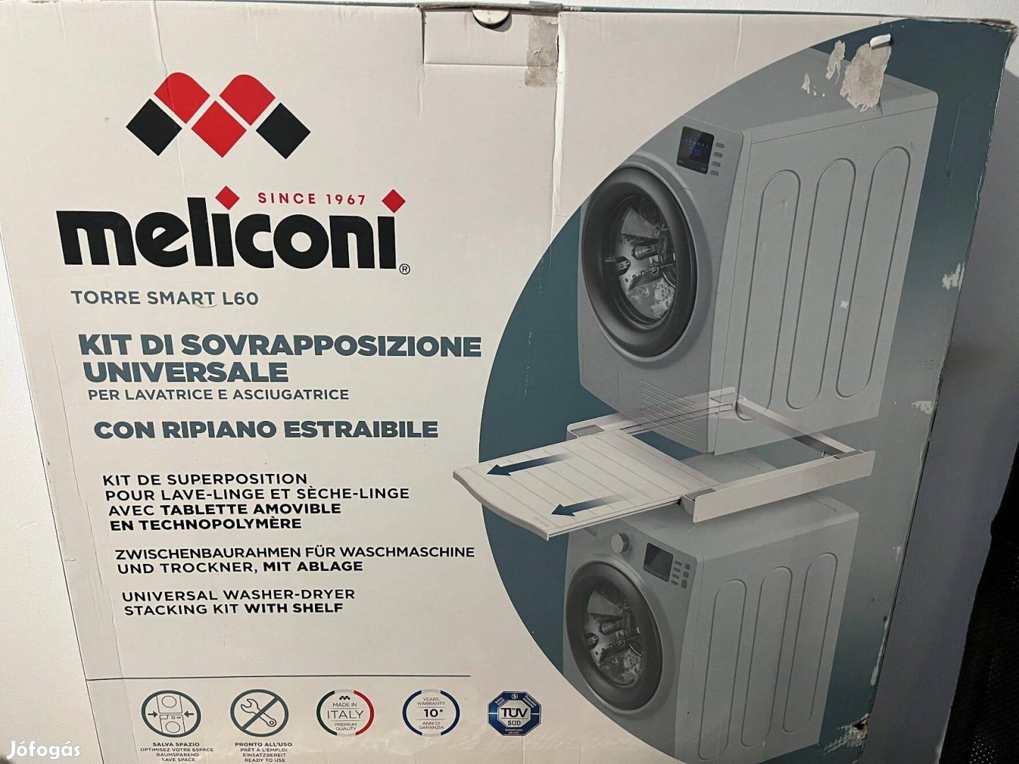 Eladó alig használt Meliconi Torre SMART L60 típusú mosógép/szárítógép összeépítő keret kihúzható fiókkal.