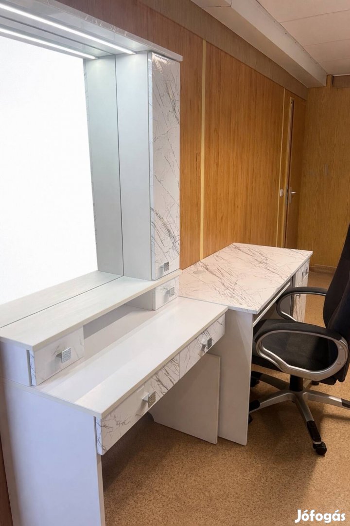 Modern tükrös sminkasztal + íróasztal + forgószék egyben eladó