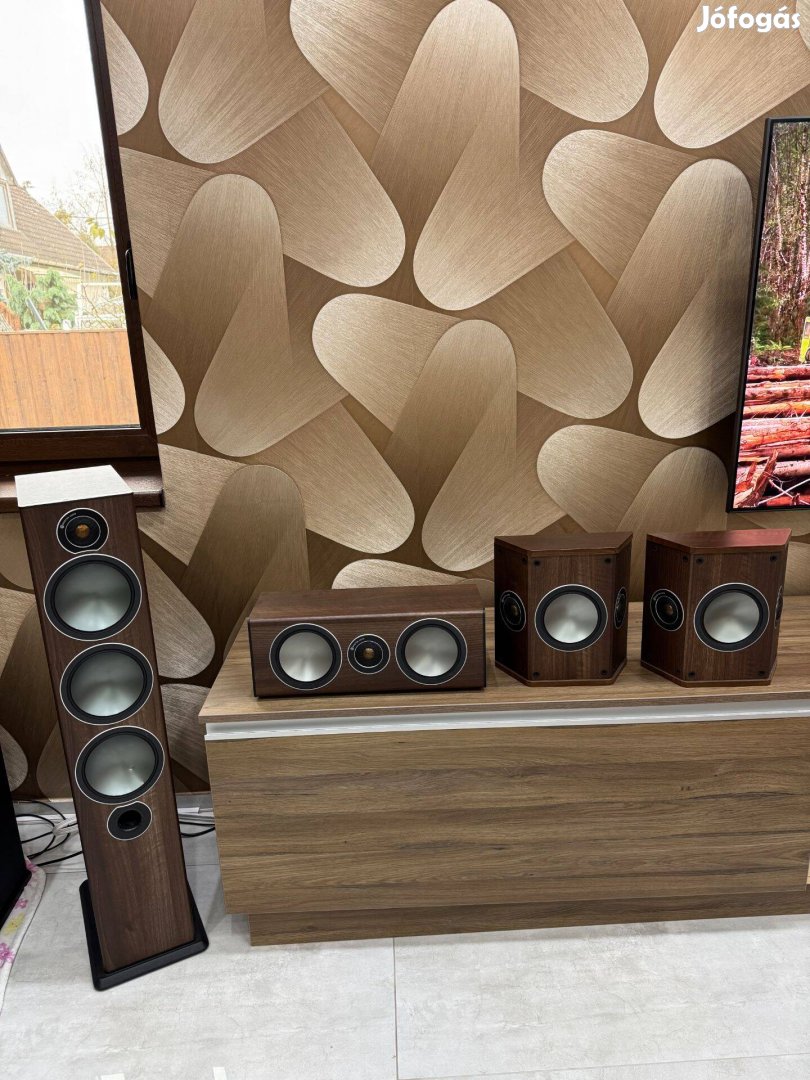 Eladó egy Monitor Audio Bronze 6 5.0 szett, dió színben, melynek részei 2db Bronze 6 front, 1db Bronze Centre center és 2db Bronze FX surround sugárzó, első tulajdonostól. Nagyon jó állapotban van a szett két kisebb esztétikai hibával. Az FX hátlapján furat nyomok vannak, fali konzol csavarok miatt, illetve az egyik front membránján vagy egy kb fél-egy centiméteres benyomódás. Füstmentes környezetben volt használva. Előlapok megvannak, ahogy a dobozaik is, így postázás sincs kizárva, de személyes átvétel az elsődleges. Garancia már nincs rá. Új rendszer vásárlása miatt eladó, így jelenleg eldobozolva várják új gazdájukat. Igény és előzetes egyeztetés esetén meghallgatható. Ugyanitt Denon AVR-X2500H házimozi erősítő is eladó, amivel a szett volt használva.