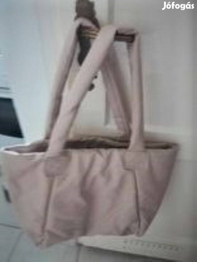 Nagy méretű, világos bézs színű, pufi táska. Strand táskának is hordható, nagyon sok minden belefér. Belül 3 kis rekesze van még, telefonnak, zsepinek stb.
