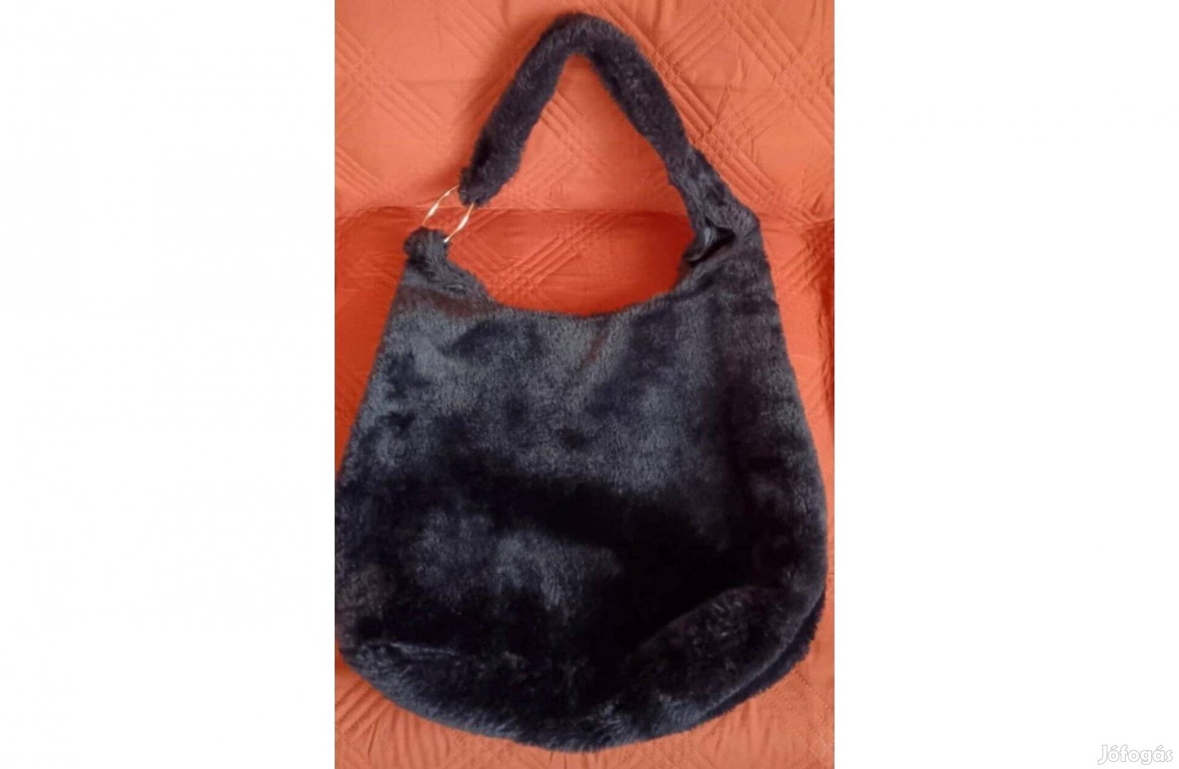 Újszerű, kétszer használt fekete szőrmés táska.