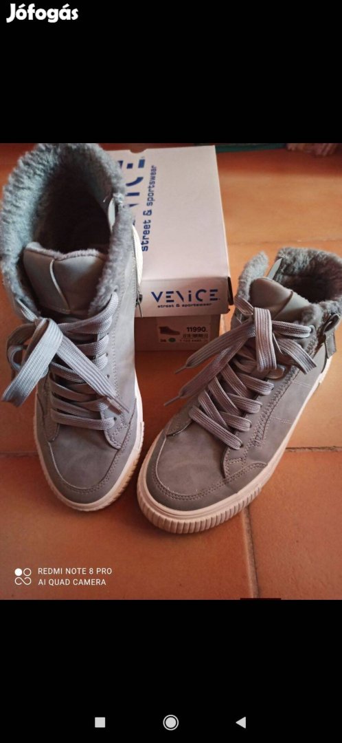 38- as pár alkalimmal viselt női bundás szürke bokacipő, cipzáras