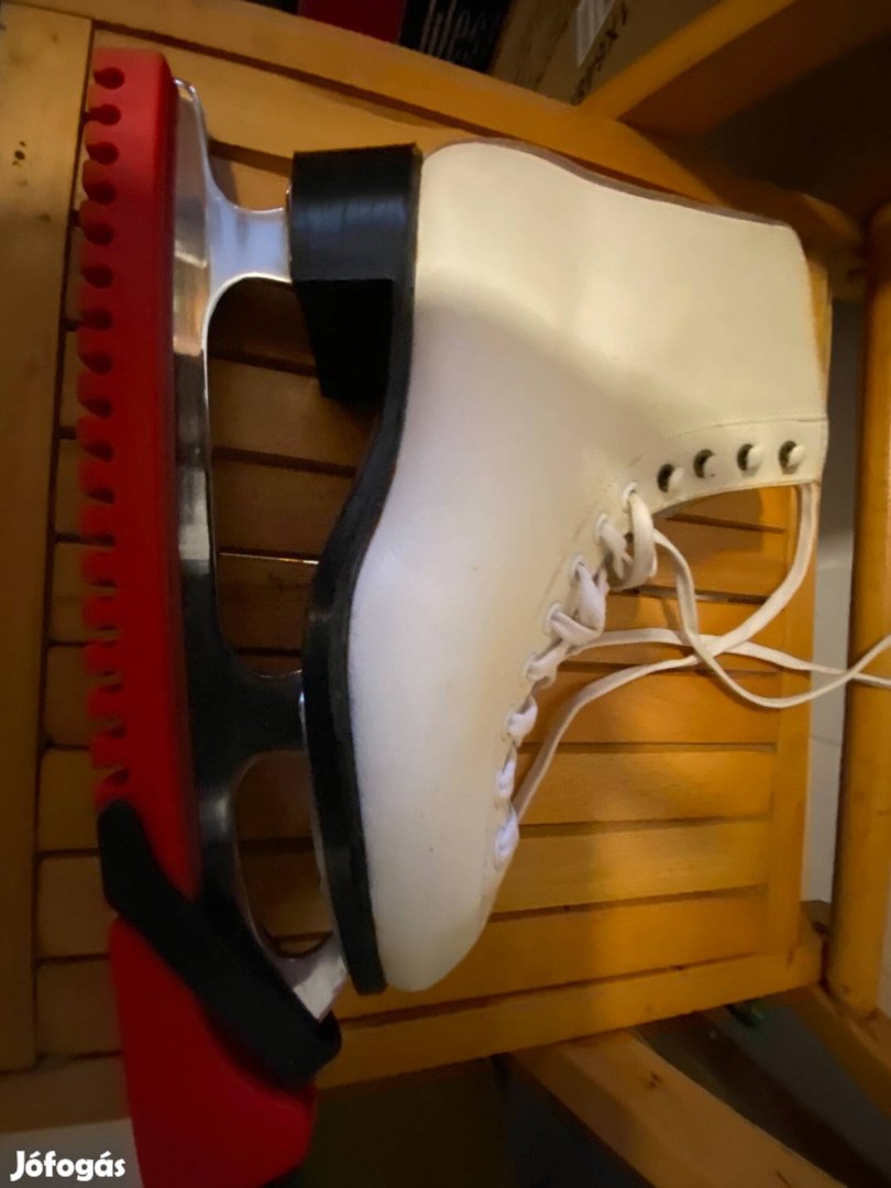 Használt, de jó állapotban lévő, fehér, 36-s méretű, női, fűzős, korcsolyacípő