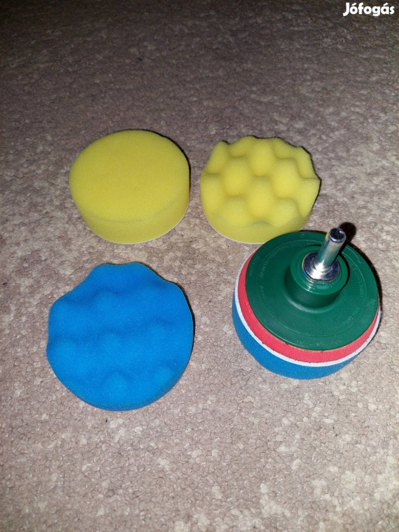 Eladó polírozó szett fúróra 1db tépőzáras adapter 4db tépőzáras szivaccsal új.