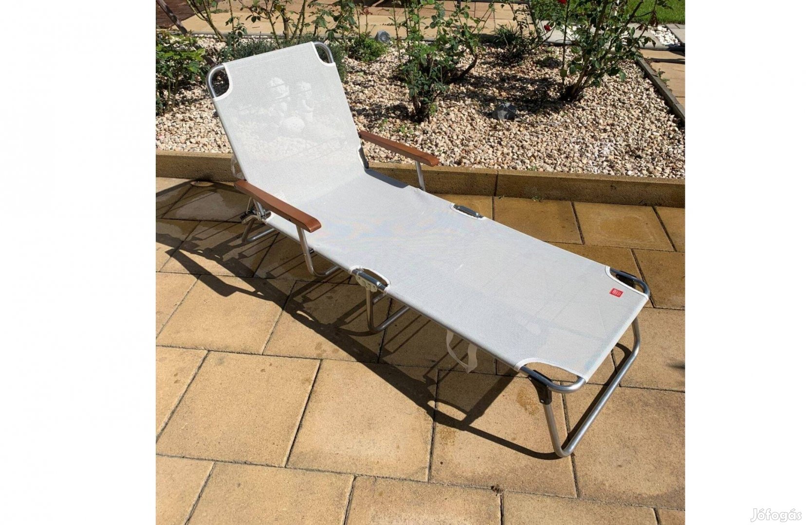 Eladó a Képeken Látható jó állapotban lévő Prémium Olasz Alu Textil Napozóágy Karfás
