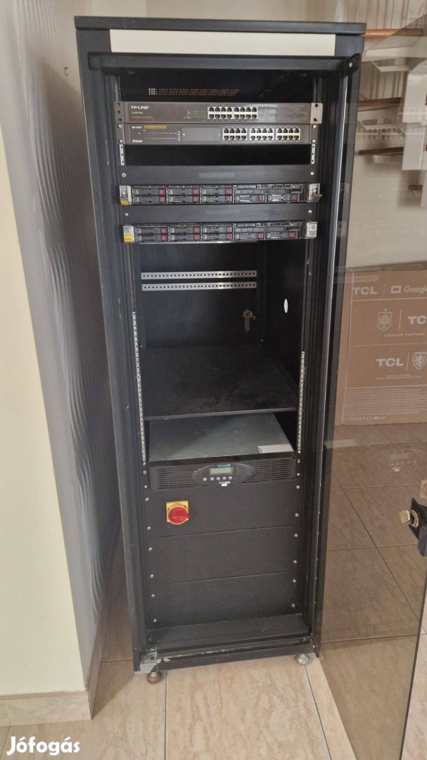 Rack szekrény, szerver gép, switch