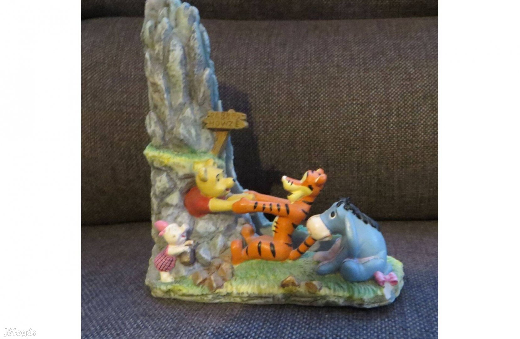 A figura a híres jelenetet örökíti meg, amikor Micimackó beszorul Nyuszi házának bejáratába, barátai (Tigris, Füles és Malacka) pedig próbálják kihúzni.