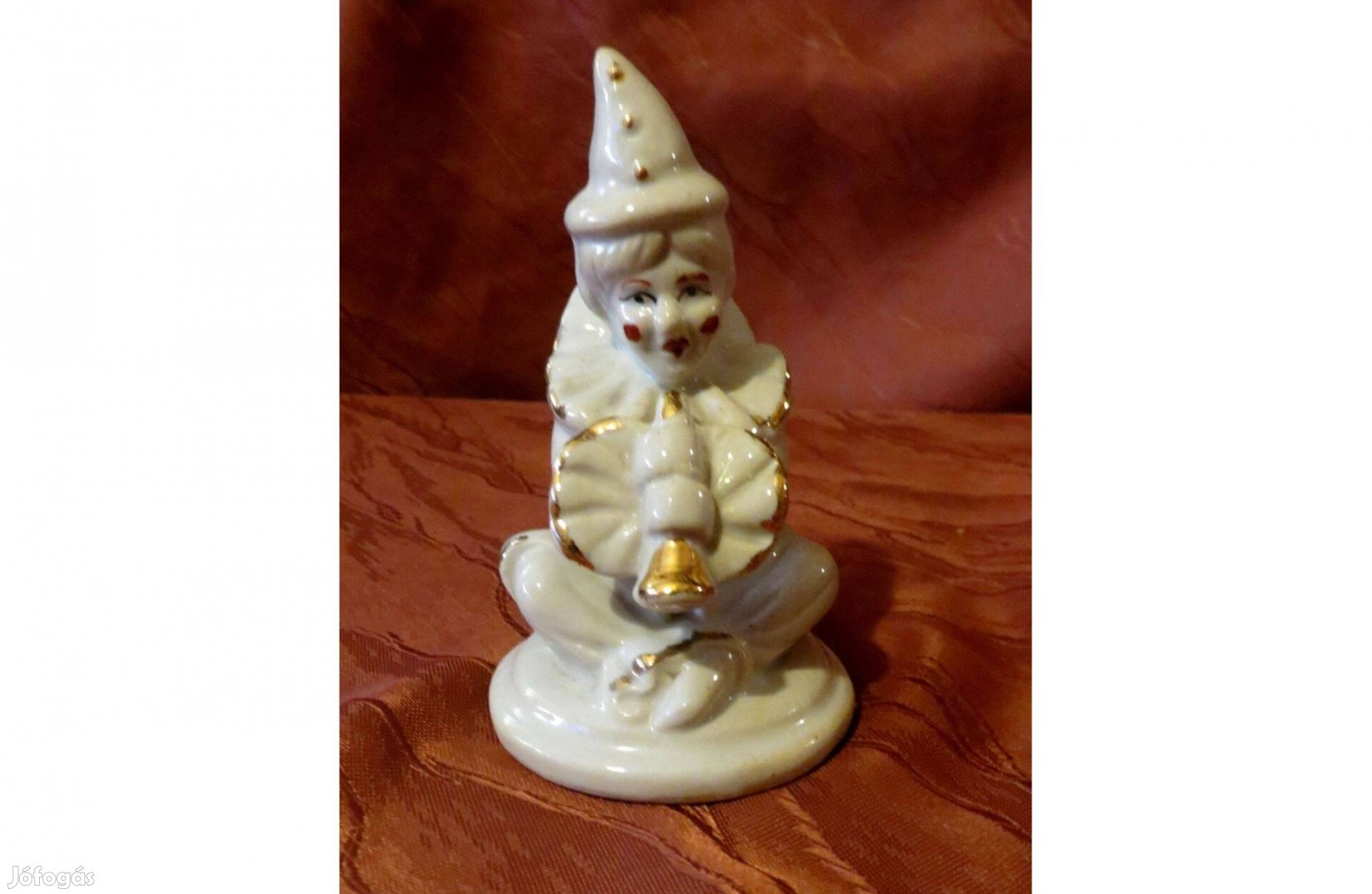Régi Pierrot porcelán bohóc baba 10,5 cm magas