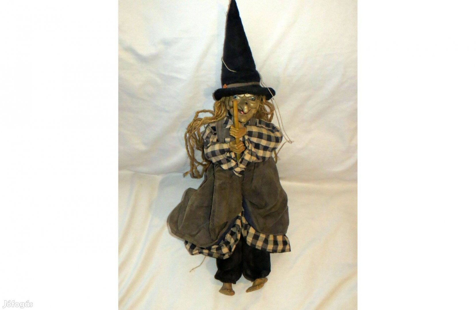 régi seprűn ülő boszorkány 55 cm magas