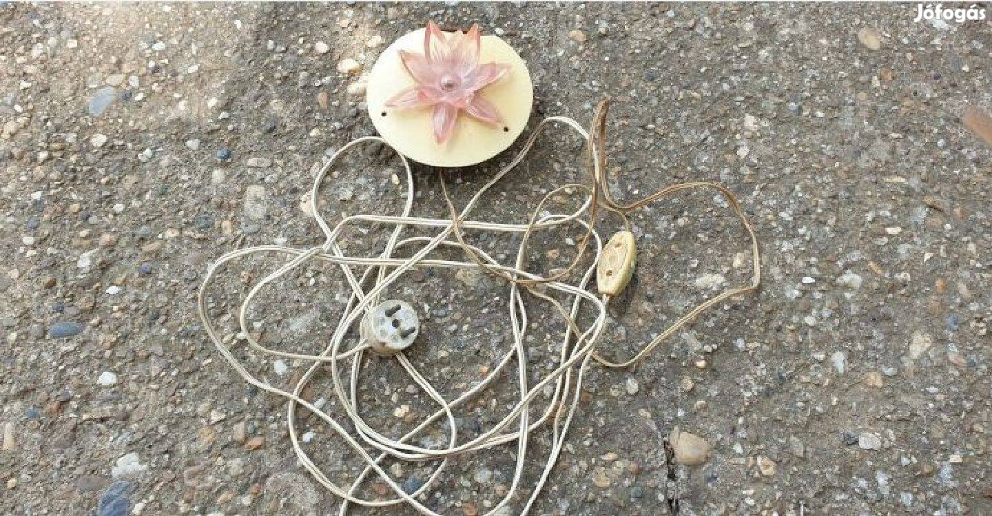 Retró Lily lámpa_hangulatfény vízililiom megjelenéssel. A borításból hiányzik egy darab. Izzó nincsen benne. Működése nem ismert.