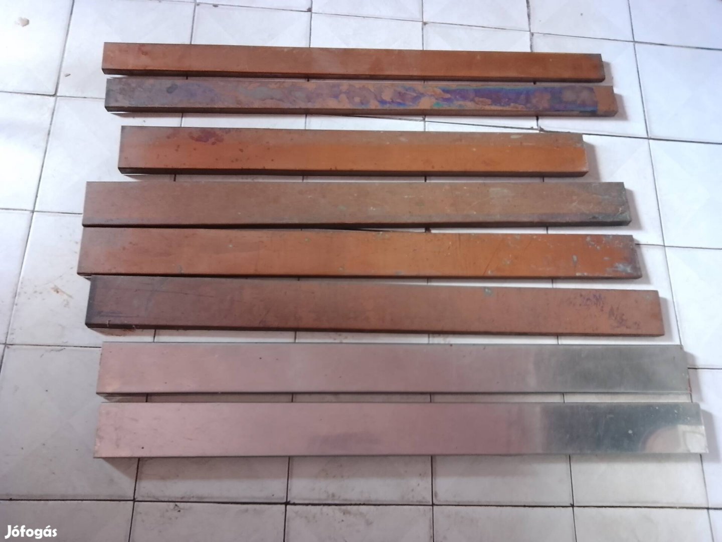 A képen látható állapotban eladó. 6 db réz és 2 db rozsdamentes. 2 db 88*5 cm. A többi szélessége 7 cm. 1 db 75 cm, a többi 85-86 cm. Egyben eladó. 6000 Ft.