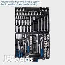 A Scheppach TB 217 egy nagyon praktikus és sokrészes (217 db) szerszámkészlet, elsősorban csavarozással kapcsolatos feladatokhoz, masszív műanyag kofferben. Minden szerszámnak méretre szabott és pontos helye van, így minden mindig kéznél van. Kedvező méreteinek köszönhetően nem foglal sok helyet, csatokkal könnyen és stabilan zárható, ill. bárhová könnyedén szállítható. A szerszámok minősége határozottan meghaladja a hasonló árfekvésű konkurens termékek standardját! A kiváló Cr-V (króm-vanádium) és Cr-Mo (króm-molibdén) ötvözet, S2 acél bithegyek, gumírozott csúszásgátló felülettel ellátott minőségi műanyag markolatok garantálják a hosszú élettartamot. A szakértők biztosan értékelni fogják a racsni fogainak finom kialakítását, amely lehetővé tesz egy kis, 5°-os, visszamozgást, illetve annak alakját, melynek köszönhetően nagyobb erőkifejtést lehet elérni anélkül, hogy sérüljön a csavar.