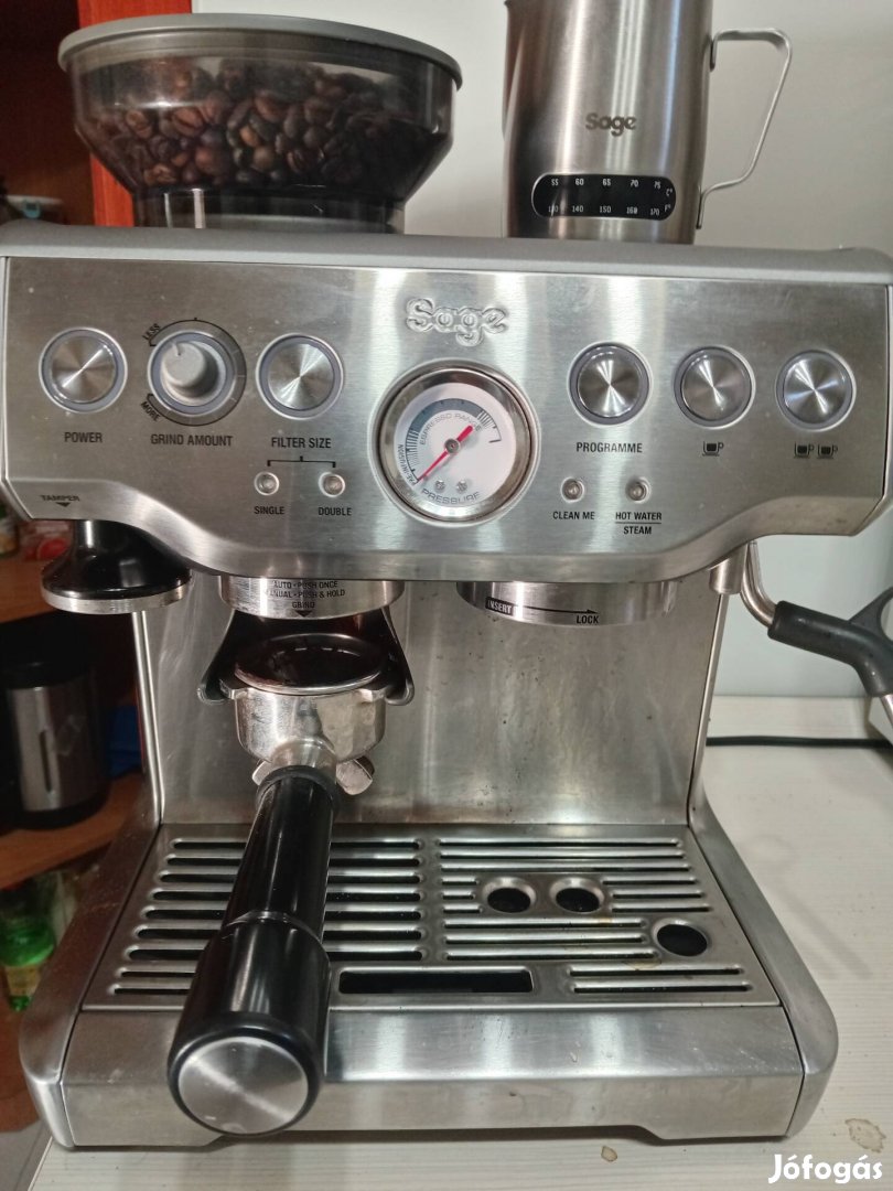 Eladó egy megkímélt, szép állapotú Sage barista kávéfőző. Minden kiegészítővel, tejhabosító kancsóval.