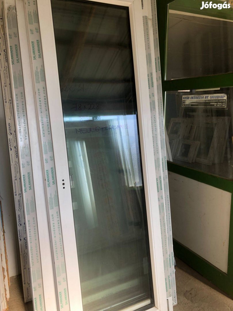 Salamander erkély ajtó, 1 szárnyas, jobbos, építkezésből visszamaradt, fóliás, még nem volt beépítve. Melegperemes!!