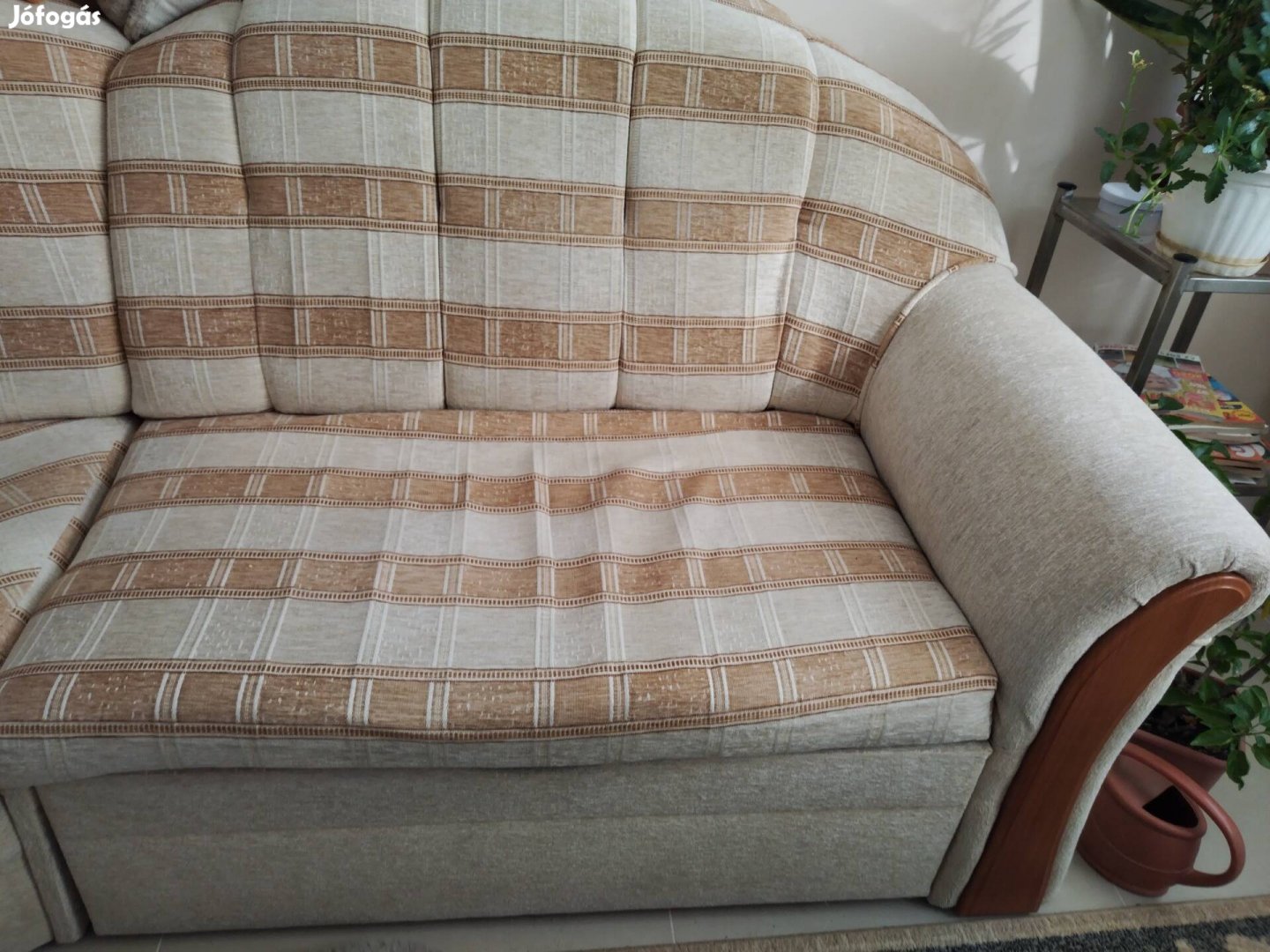 Használt, de hibátlan állapotban lévő sarok ülő garnitúra, fotellal, ágynemű tartóval elvihető.
