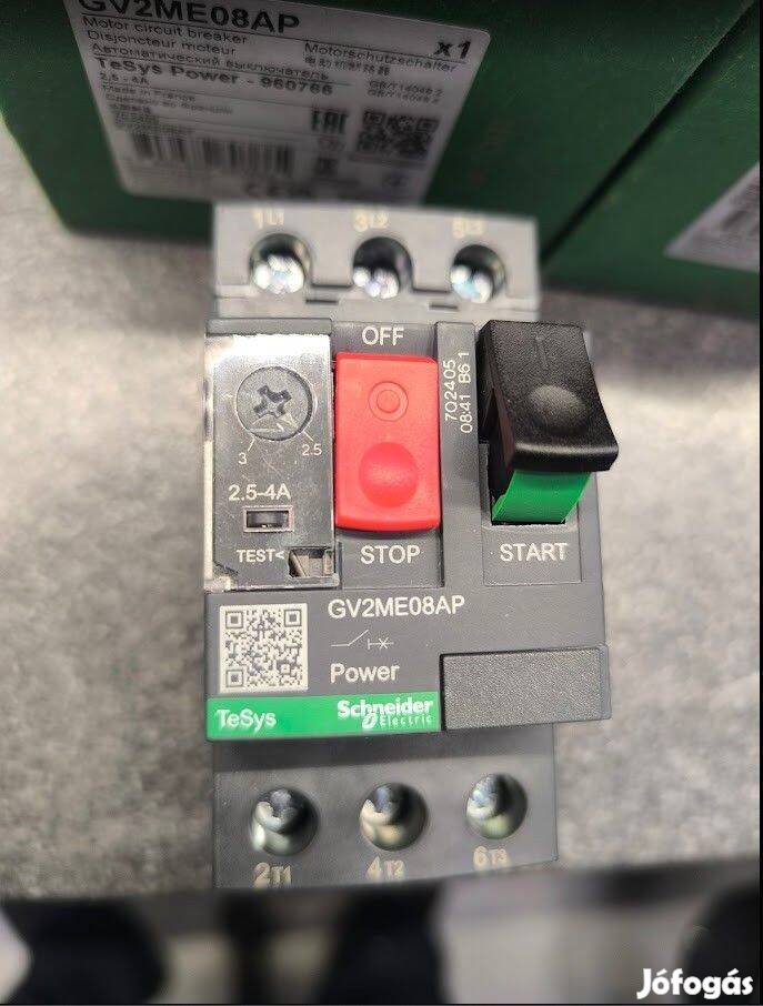 Eladó a cimben és a képeken szereplő Schneider GV2ME08AP motorvédő kapcsoló 3P 2,5-4A 100kA . Teljesen új képek erejéig kicsomagolva.