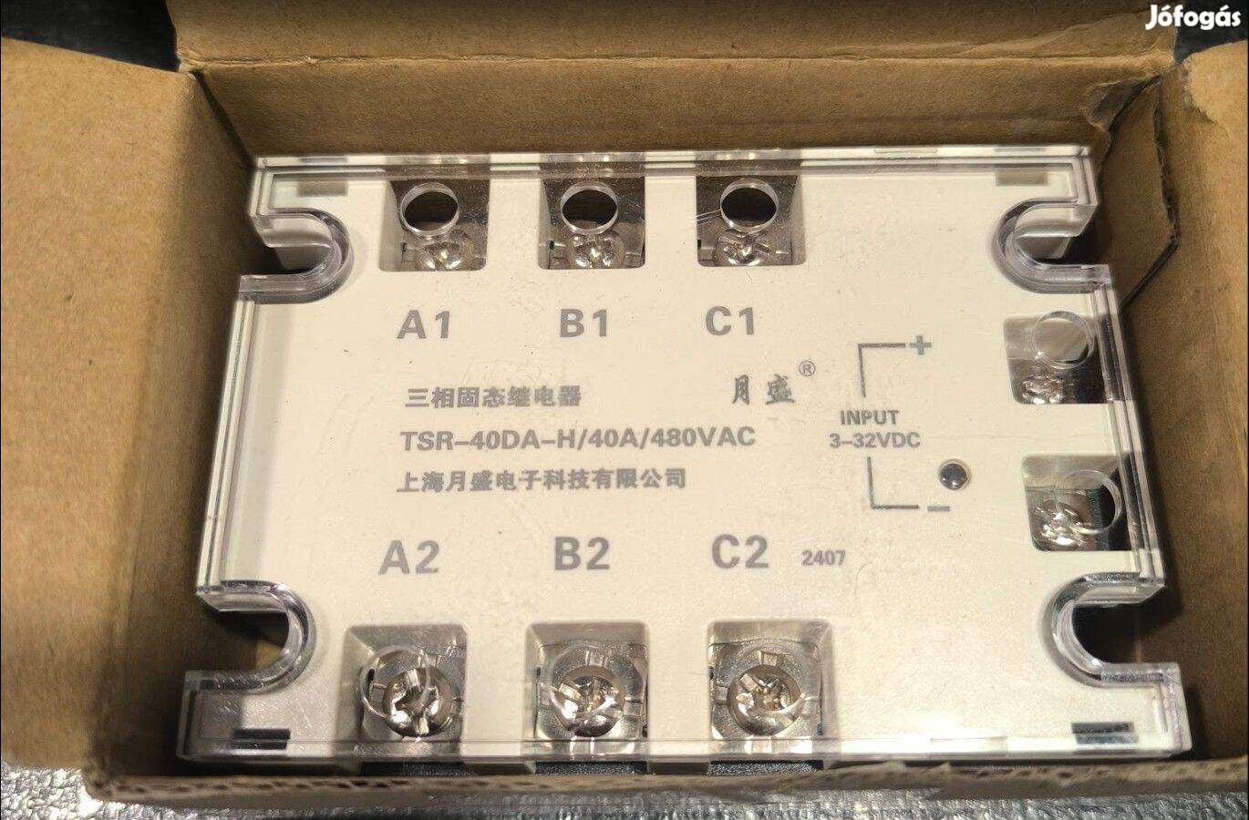 Eladó a képeken látható ipari 40A / 480VAC ipari szilárdtest relé, Gyufás doboz arányok miatt fotózva, nem kis darab, további adatok a fotókon.Előre utalással posta a vevő terhére.