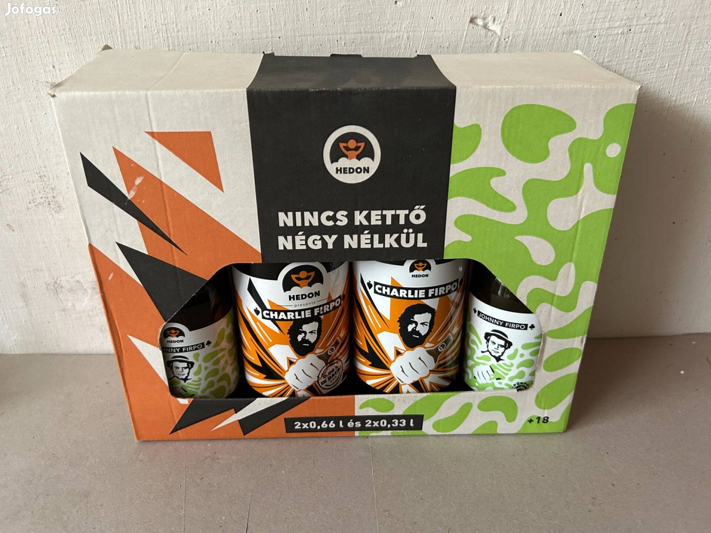 A fotókon látható négy darab sörösüveg díszdobozban eladó.