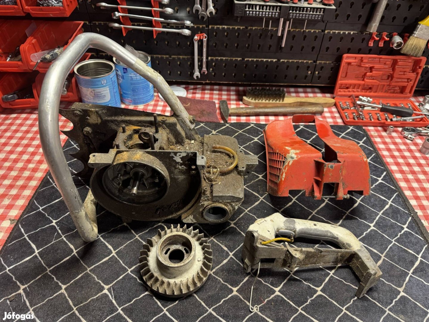 Stihl 07 alkatrészek jó állapotban egyben! Blokk sem repedt nem törött menetek is jók! Markolat hibátlan! Burkolat is jó!
