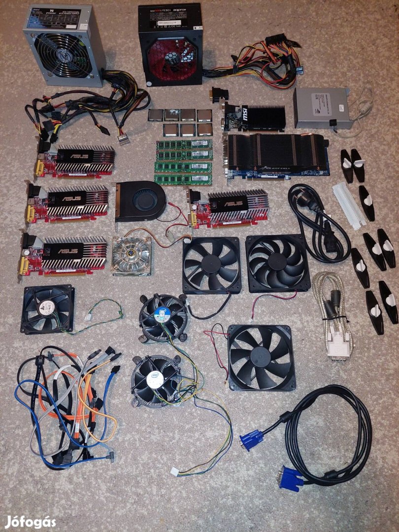 Eladó számítógép alkatrészek 500w táp ddr3 processzor ddr3 ram ddr3 videokártya ventilátorok kábelek minden ami a képen látható egyben eladó 10000 Ft. Nem postázom.