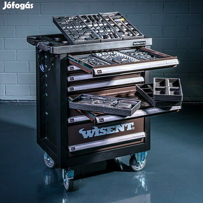 A 69 darabos A Wisent WW5000 műhelykocsi átfogó szerszámkészletet tartalmaz a műhely és a garázs számára.