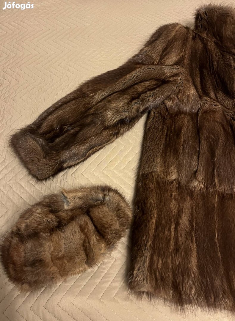 Eladó, nagyon szép, A vonalú, pézsma bunda, hozzá készült szőrme sapkával ..