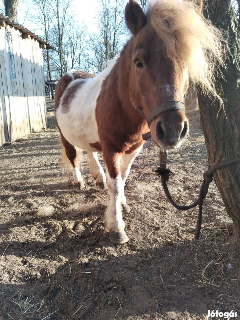Eladó 7 éves,120cm egészséges csődör póni. Nyugodt, nem rúg, kocsiba megy, gyerekek mellett van.