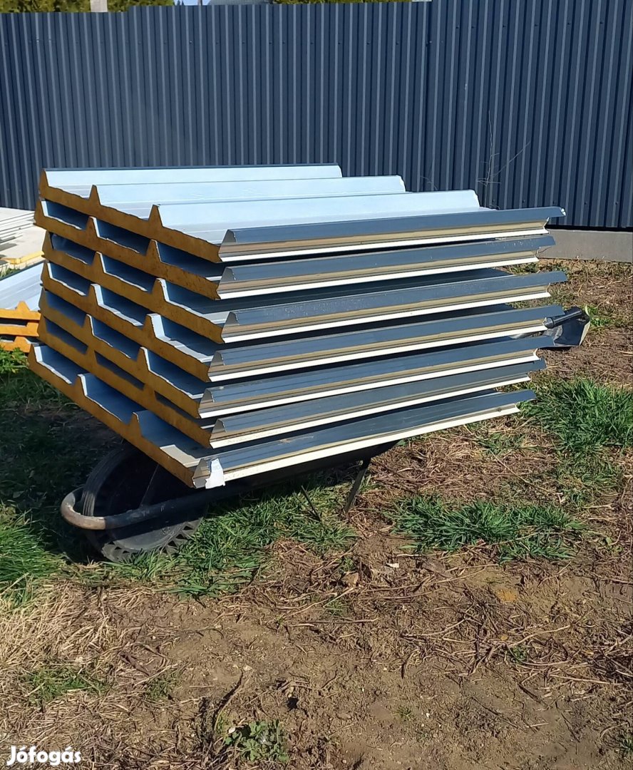 Garázsépítésből megmaradt szigetelt szendvicspanelek. 1 méteres darabok. Antracit színű egyébként, csak rajta van a fólia. Tetőpanel.