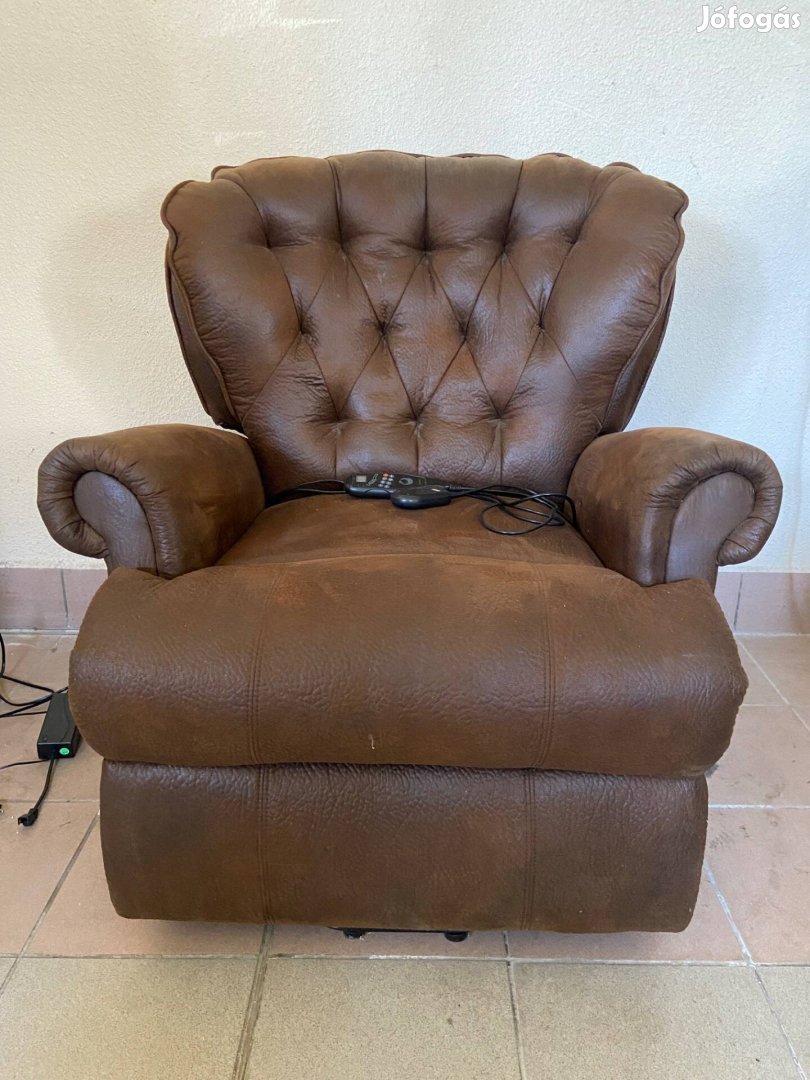 Eladnám a képeken látható nagyon kényelmes tv-fotelt. Elektromosan dönthető a háttámla, emelhető a lábtartó, sőt az egész fotelt meg tudja emelni a hidraulika (akár 120 kg terheléssel is).