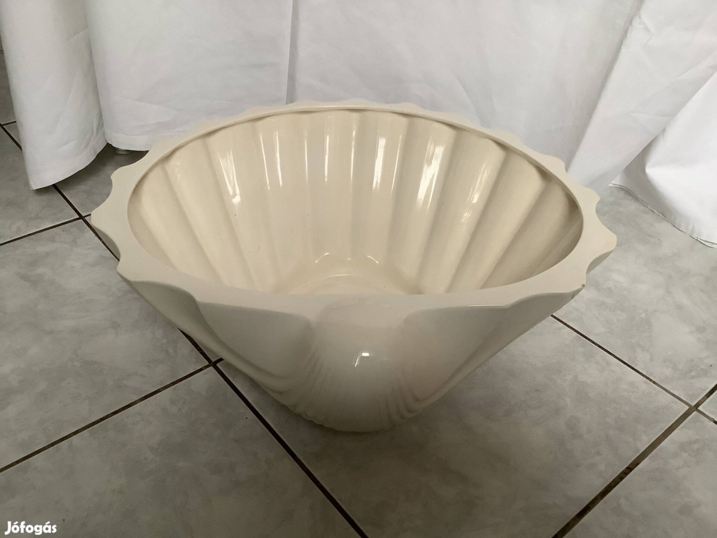 Kagyló formájú, krém színű , vékony kerámia kaspó. Mérete : 42 x 40 x 15 cm. Személyes átvétel.