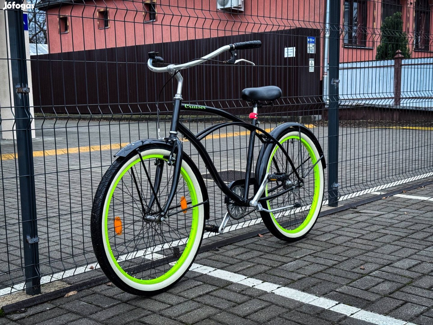 Eladó egy általam egyedileg kért férfi Cruiser kerékpár (cruiserkerekpar.hu-ról vásárolt), fekete-neonzöld színkombóval?
