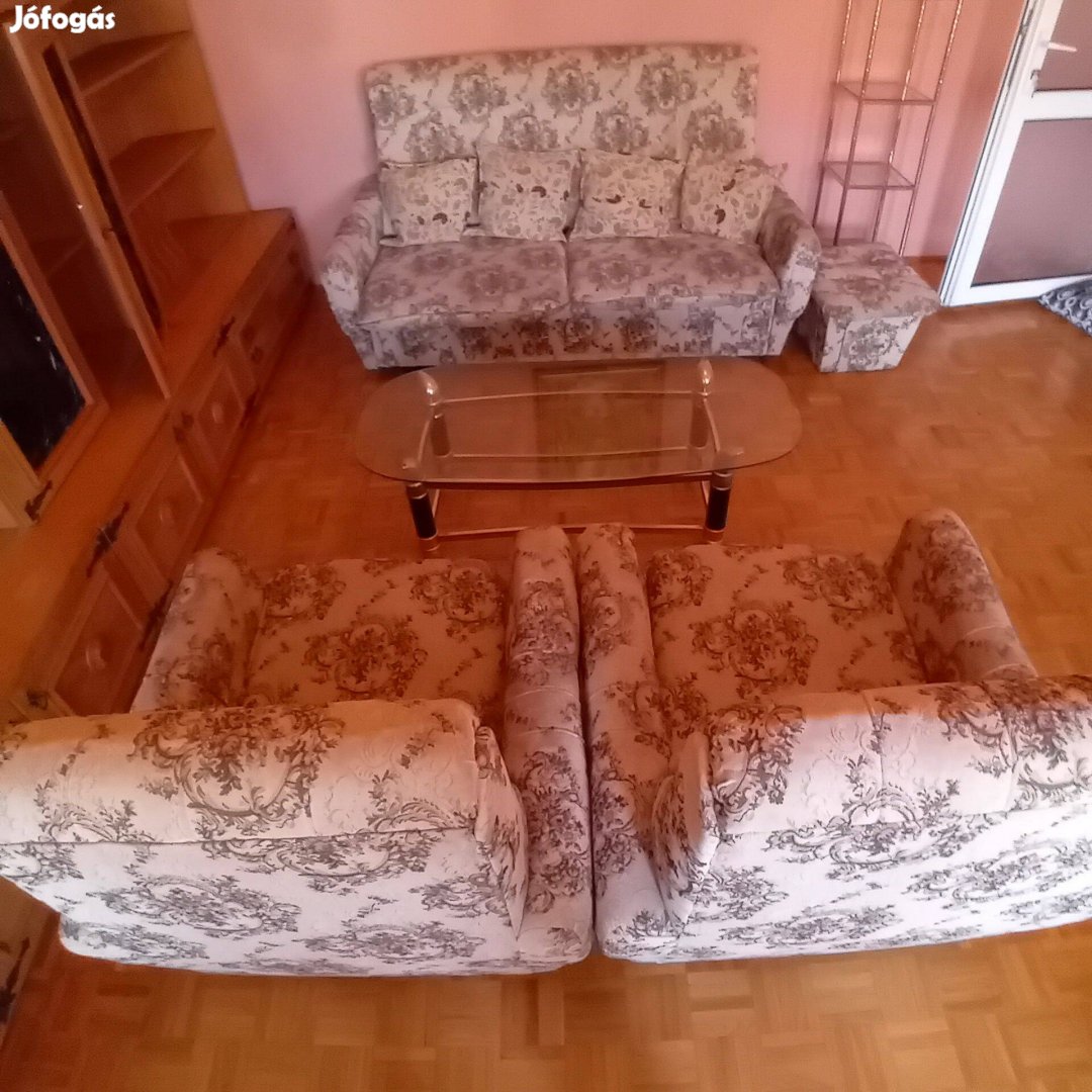 Eladó egy 3+1-1 - es ülőgarnitúra ágyazható kanapéval, vastag szövet huzattal nevetséges áron... ne vegyél több százezer forintért garnitúrát mikor ezt fillérekért viheted, ha nem tetszik húzasd át, így is jobban jársz!!