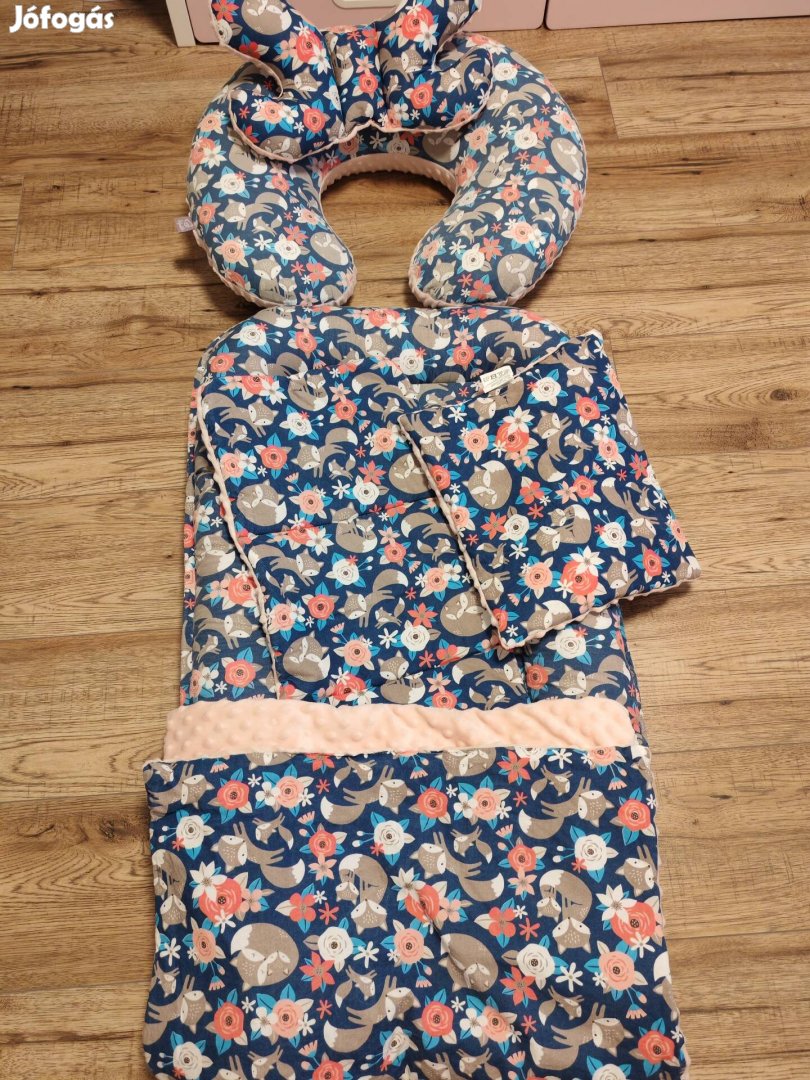 Eladó babafészek, 7db-os. 3db párna, pléd, szivacs, etetőpárna.