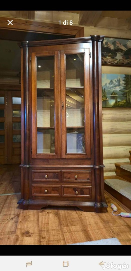 vintage fa üveges vitrin