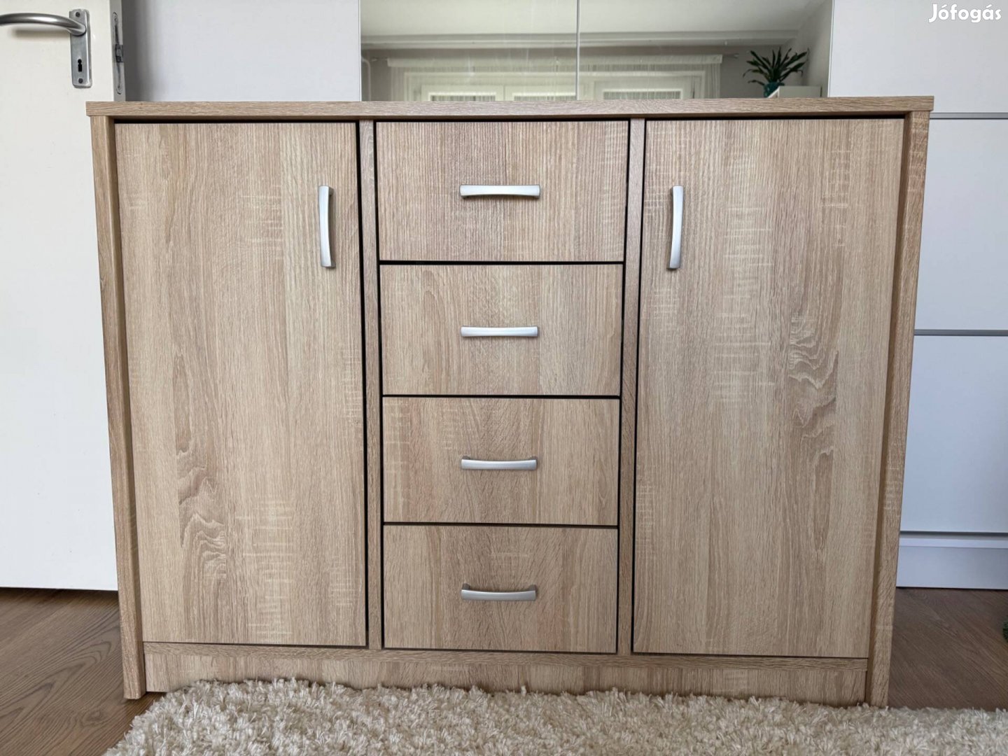 2 ajtós 4 fiókos világos tölgy komód/tálaló