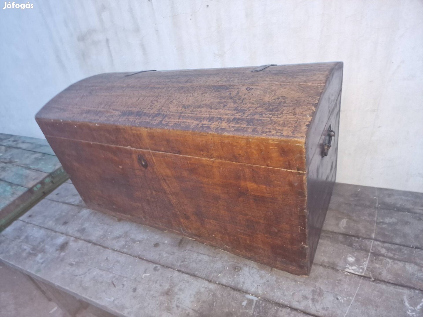 Antik utazó láda teljesen eredeti állapotban és teljesen jo állapotban is anyaga fenyő deszka méretek a képeken ár 25000ft futár megoldható
