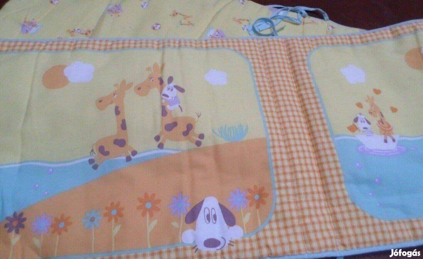 Eladó újszerű ,igényes babaágy ágyrács védő pamut vászonból pasztell színben ,mindkét felén állatkás mintával. méret: 180 cm hosszú ,38 cm széles