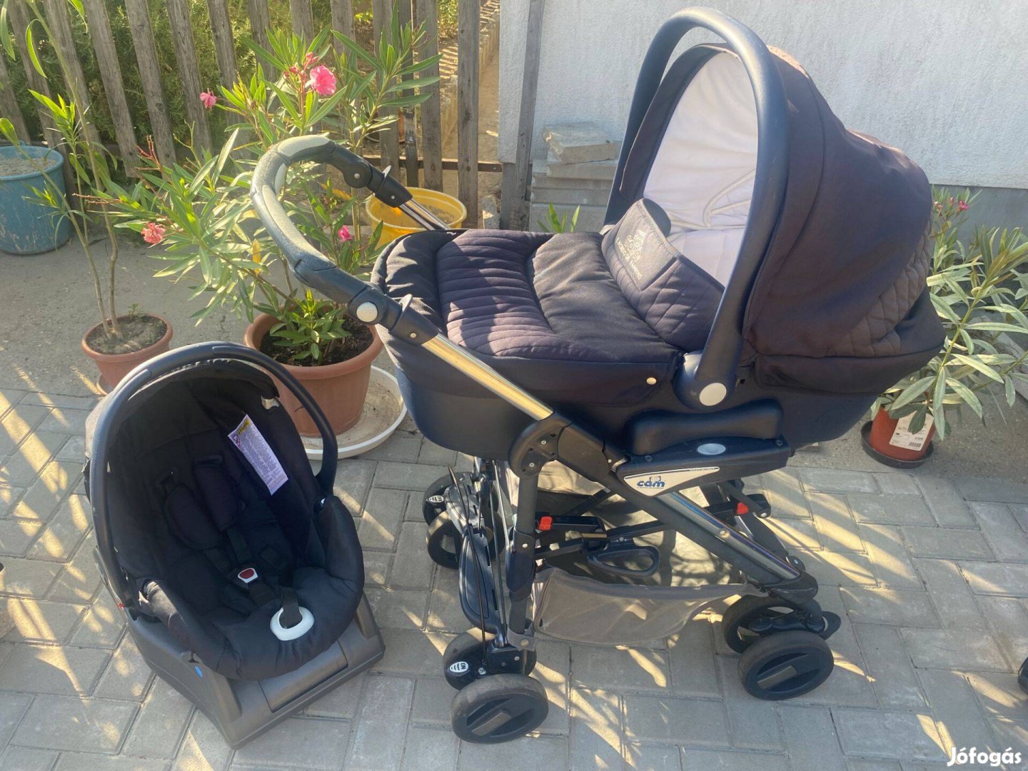 Eladó a képen látható CAM 3in1 babakocsi. A hordozó talpa járműbe rögzíthető. Jár hozzá táska, esővédő is, csak a képről lemaradt. Csak személyes átvétel lehetséges. Eljössz, megnézed, kifizeted, elviszed.