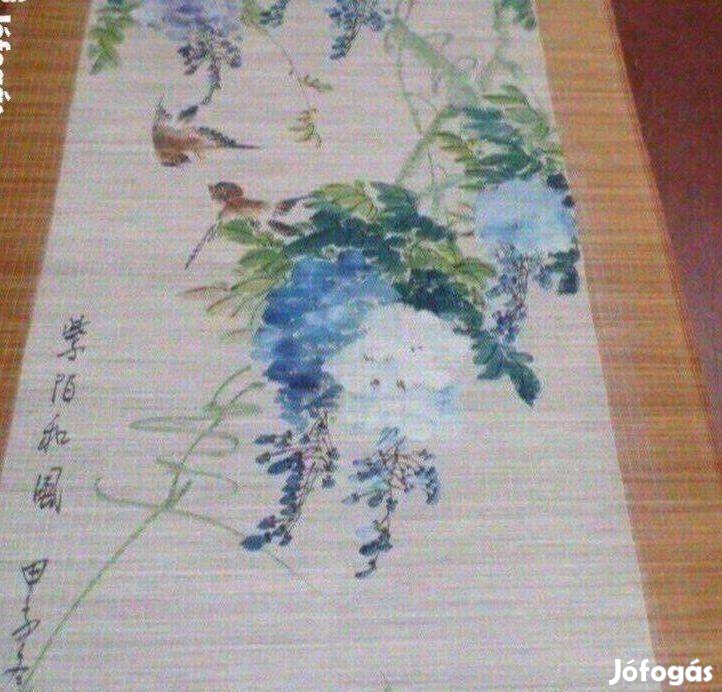 Eladó kézi festésű bambusz kép -roló virág, madár motívummal szép, hibátlan állapotban. méret: 200cmx55cm