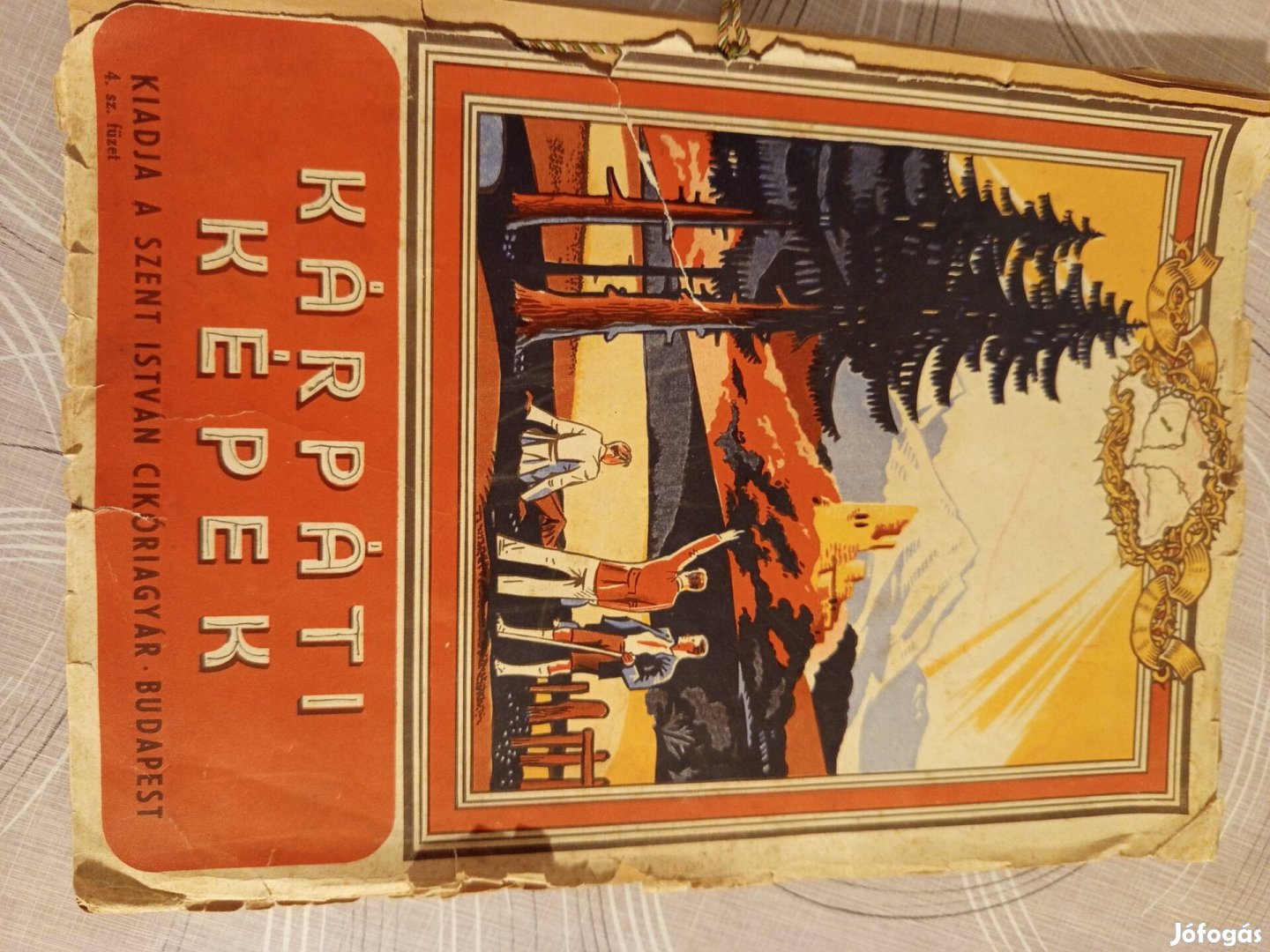 1938- ból való Kárpáti Képek című matricás gyűjtő album. A Szent István Cikóriagyár Budapest kiadványa.