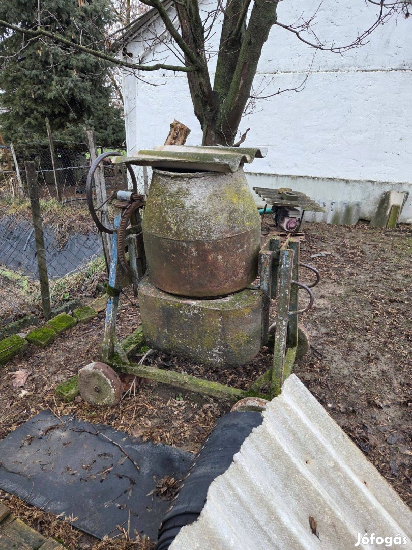 Nagy puttonyú, erős szerkezetű, 1 fázisú, működőképes betonkeverő.