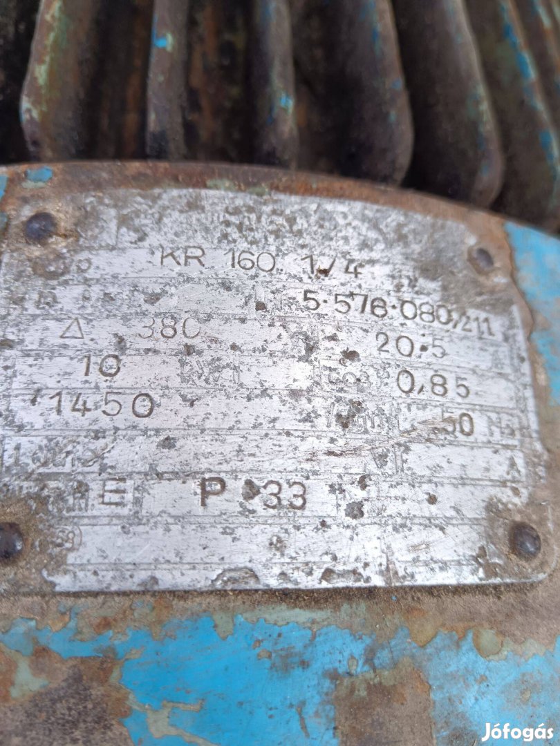 Eladó három fázisú villanymotor 10 kw1450 fordult müködik. Irányár 85000ft.