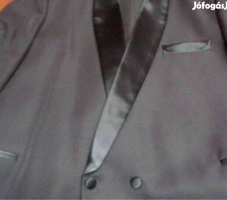 Eladó fekete férfi szmoking alkalmi öltöny újszerű állapotban félár alatt. méret:52-es L-es váll-50 cm ,mell-120 cm.újj-66cm nadrág hossz-113 cm ,derék-96 cm
