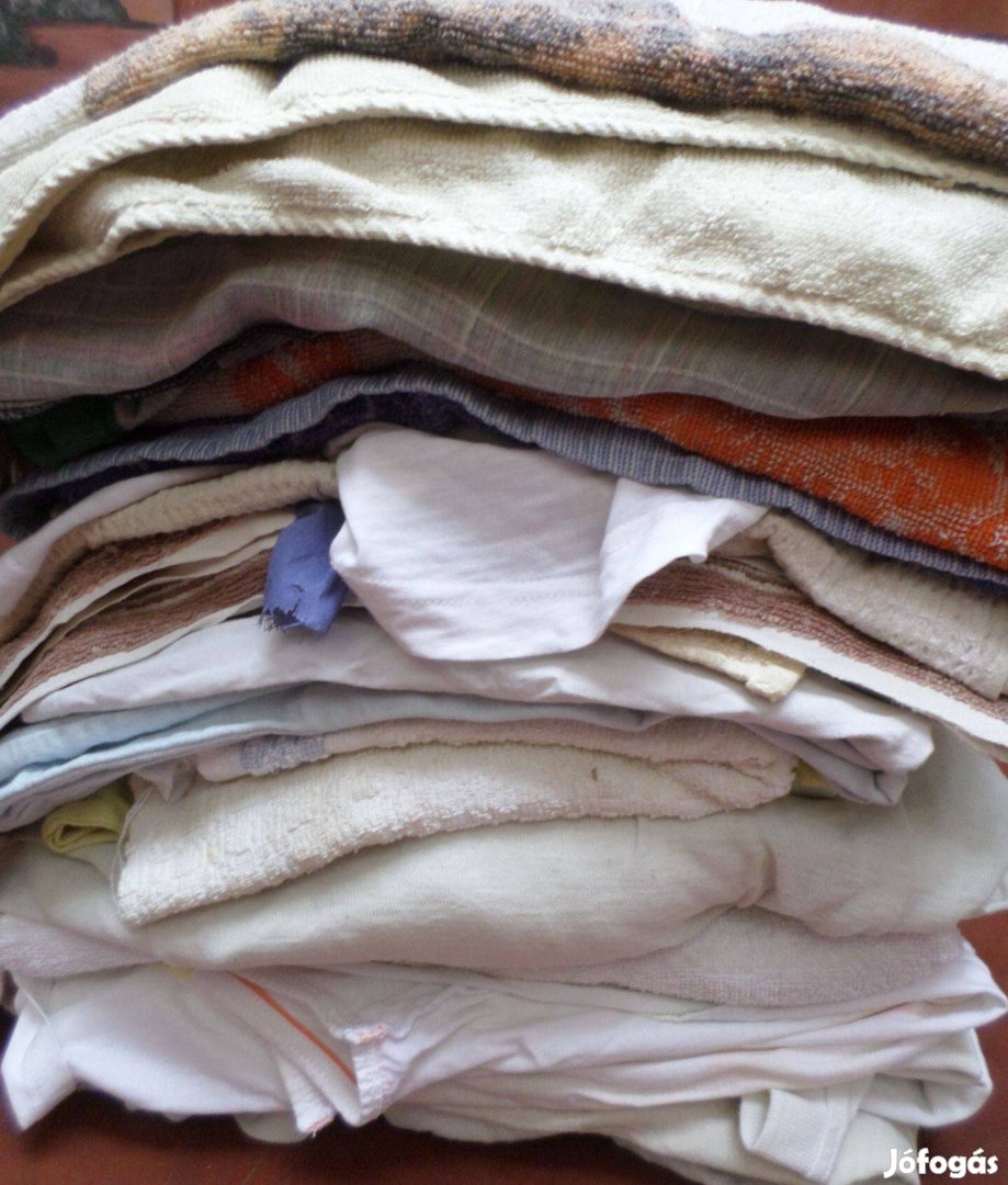 Eladó egyben 10 kg géprongy géptörlő ruha. Tartalma használt pamut pólók ,lepedők,törölközők.