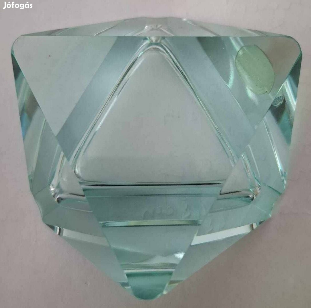 Eladó egy geometrikus formájú, jégkék színű üvegből készült vintage hamutartó.