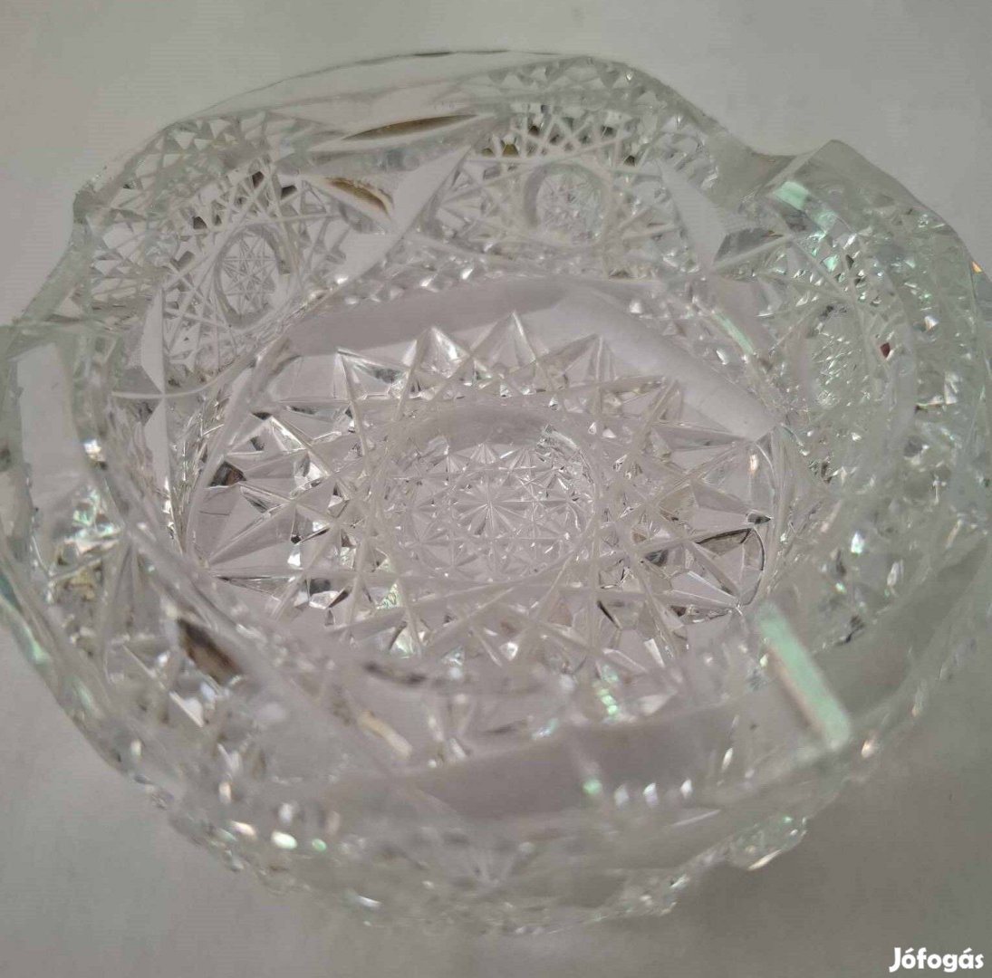 Eladó egy retró, csiszolt üveg hamutartó. Méretei: kör alakú, átmérő 10,5 cm, magassága 3,5 cm, súlya 0,5 kg