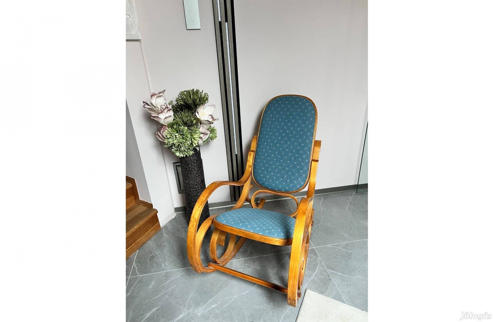 Nem használt, teljesen hibátlan állapotú hintaszék eladó. Kék kárpitozott szövet színnel.