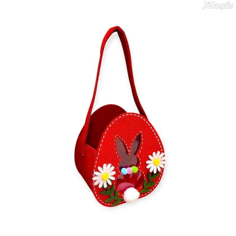 Vidám piros filc kosár tojás formában, tökéletes húsvéti dekorációhoz. Ideális asztalra, polcra vagy ajándékkosárként, hogy ünnepi, tavaszi hangulatot teremtsen otthonodban.